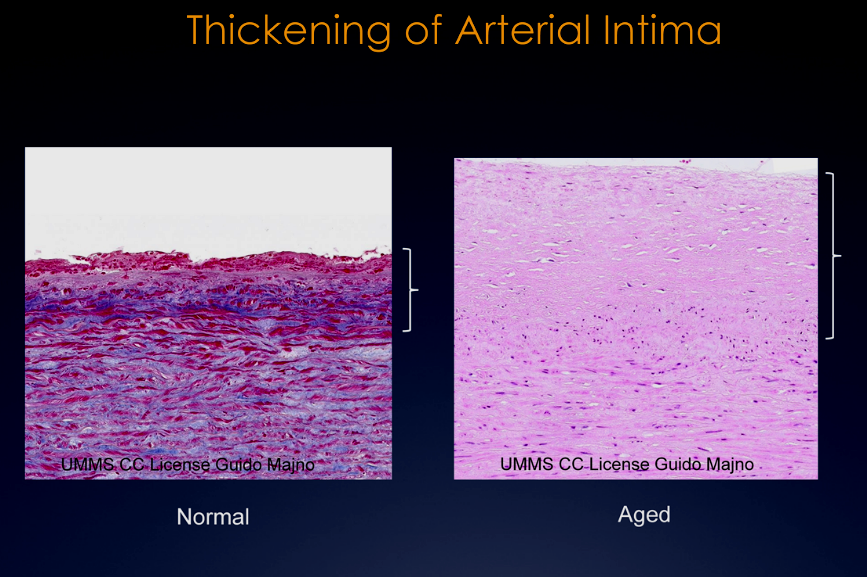 στ) Πάχυνση αρτηριακού τοιχώματος (οι αρτηρίες έτσι γίνονται λιγότερο εύενδοτες και έτσι αυξάνεται η πίεση που πρέπει να υπερνικήσει η αριστερή κοιλιά για να προωθήσει το αίμα… υπερτροφία)