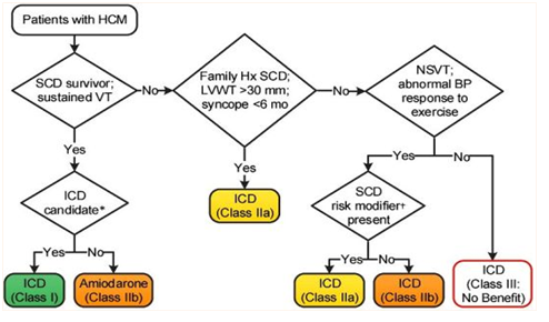 Ο κίνδυνος θανάτου από αυτήν συγκριτικά με το γενικό πληθυσμό, είναι περίπου 3πλάσιος (50-70 ετών) και 4πλάσιος (20-30 ετών). Οι συχνότερες εκδηλώσεις (περίπου στο 21%) της HCM είναι η κολπική μαρμαρυγή και η καρδιακή ανεπάρκεια που εμφανίζονται αργότερα, κυρίως σε ηλικίες >50 ετών και οι κακοήθεις κοιλιακές αρρυθμίες (περίπου στο 32%), με αυξημένο κίνδυνο Αιφνίδιου Καρδιακού Θανάτου, κυρίως σε όσους η διάγνωση γίνεται σε ηλικία <40 ετών. Οι κακοήθεις κοιλιακές αρρυθμίες είναι σπάνιες, μόνο 1%, σε όσους η διάγνωση της HCM γίνει μετά την ηλικία των 60 ετών!