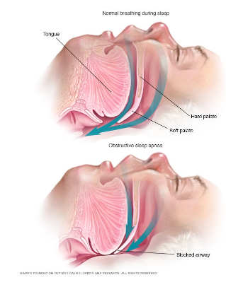 Όταν οι μύες χαλαρώνουν, ο αεραγωγός σας στενεύει ή κλείνει καθώς εισπνέετε. Δεν μπορείτε να πάρετε αρκετό αέρα, γεγονός που μπορεί να μειώσει το επίπεδο οξυγόνου στο αίμα σας. Ο εγκέφαλός σας αντιλαμβάνεται την ανικανότητά σας να αναπνεύσετε και σας ξεσηκώνει για λίγο από τον ύπνο, ώστε να μπορέσετε να ανοίξετε ξανά τον αεραγωγό σας. Αυτό το ξύπνημα είναι συνήθως τόσο σύντομο που δεν το θυμάστε.