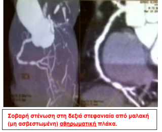 Άνδρας 60 ετών πρώην καπνιστής με ιστορικό υπέρτασης, που προ εβδομάδας εμφάνισε επεισόδιο άλγους στην αριστερή παραστερνική περιοχή κατά τη διάρκεια ανόδου σκάλας. Το άλγος υποχώρησε κατά την ανάπαυση εντός 2-3 λεπτών. Δεν θυμάται να είχε αισθανθεί άλλο παρόμοιο ενόχλημα στο παρελθόν. Η αντικειμενική εξέταση και το ΗΚΓ ήταν φυσιολογικά. Υπεβλήθη σε αξονική στεφανιαιογραφία.